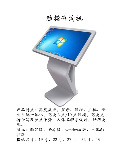 全新一代多點觸摸查詢系列產品,自主研發,精心打磨。廣泛應用于各行各業,客戶遍及政府、學校、商場、醫院、傳媒、交通等。